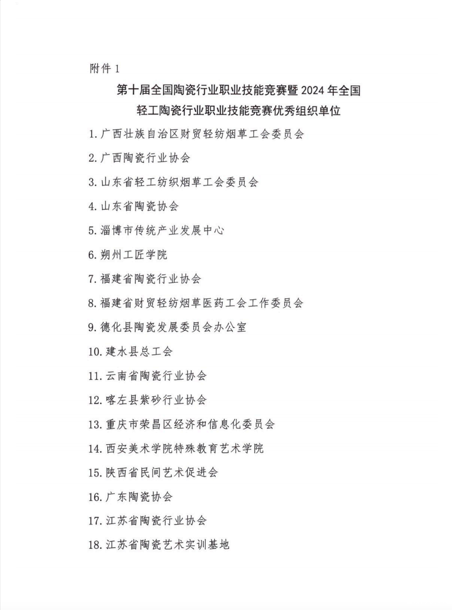 关于第十届全国陶瓷行业职业技能竞赛暨2024年全国轻工陶瓷行业职业技能竞赛优秀组织单位和特殊贡献单位的表彰决定