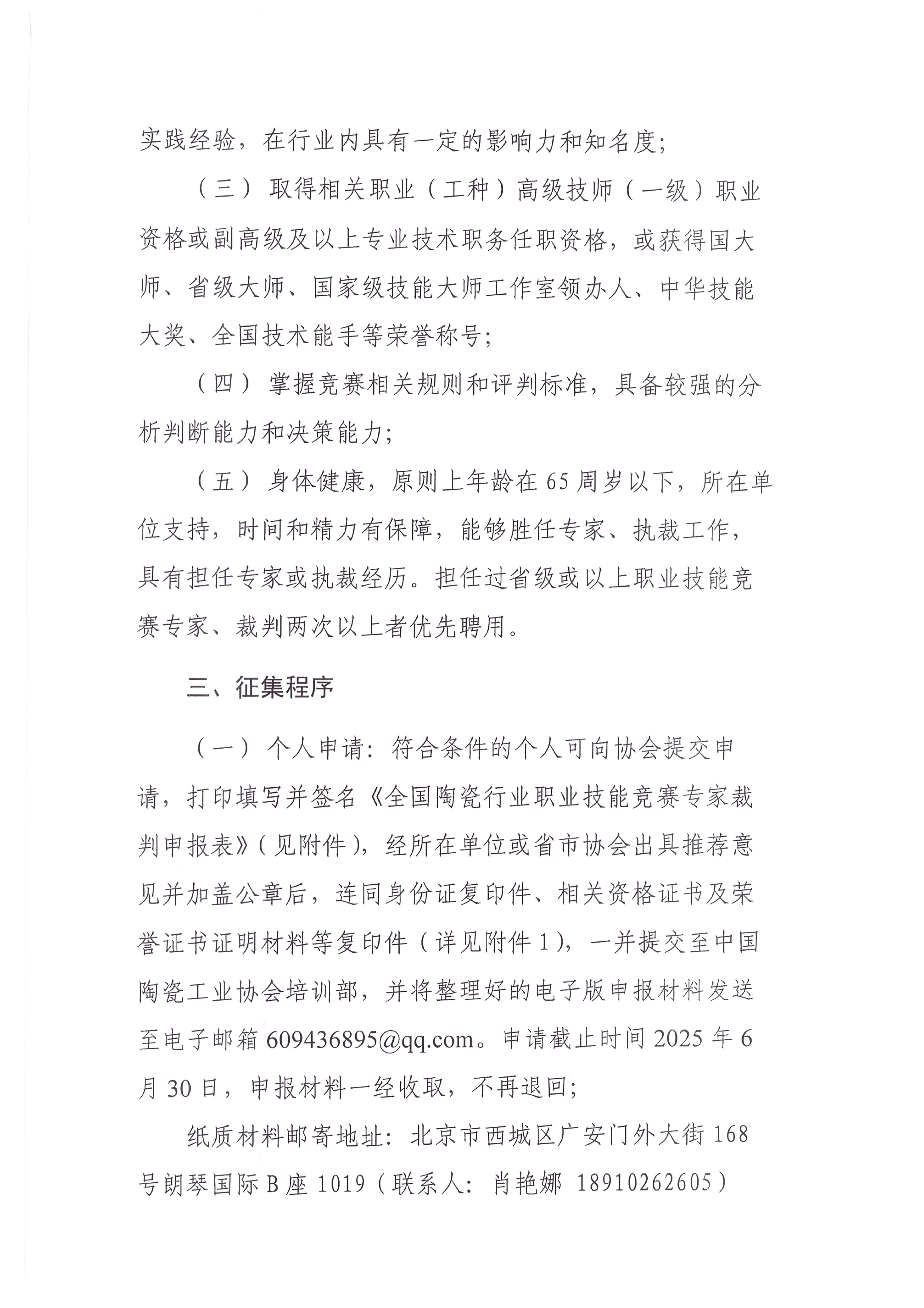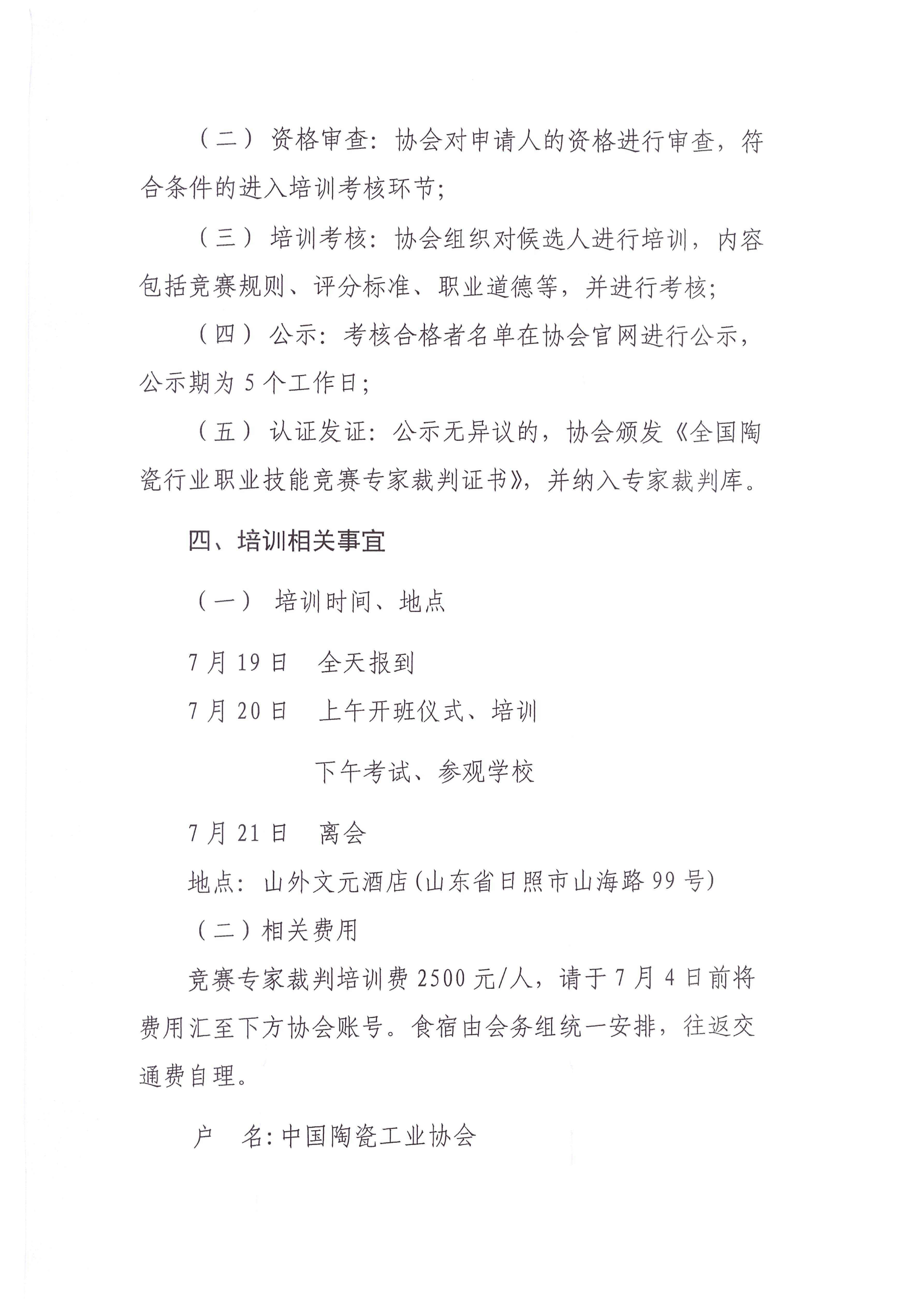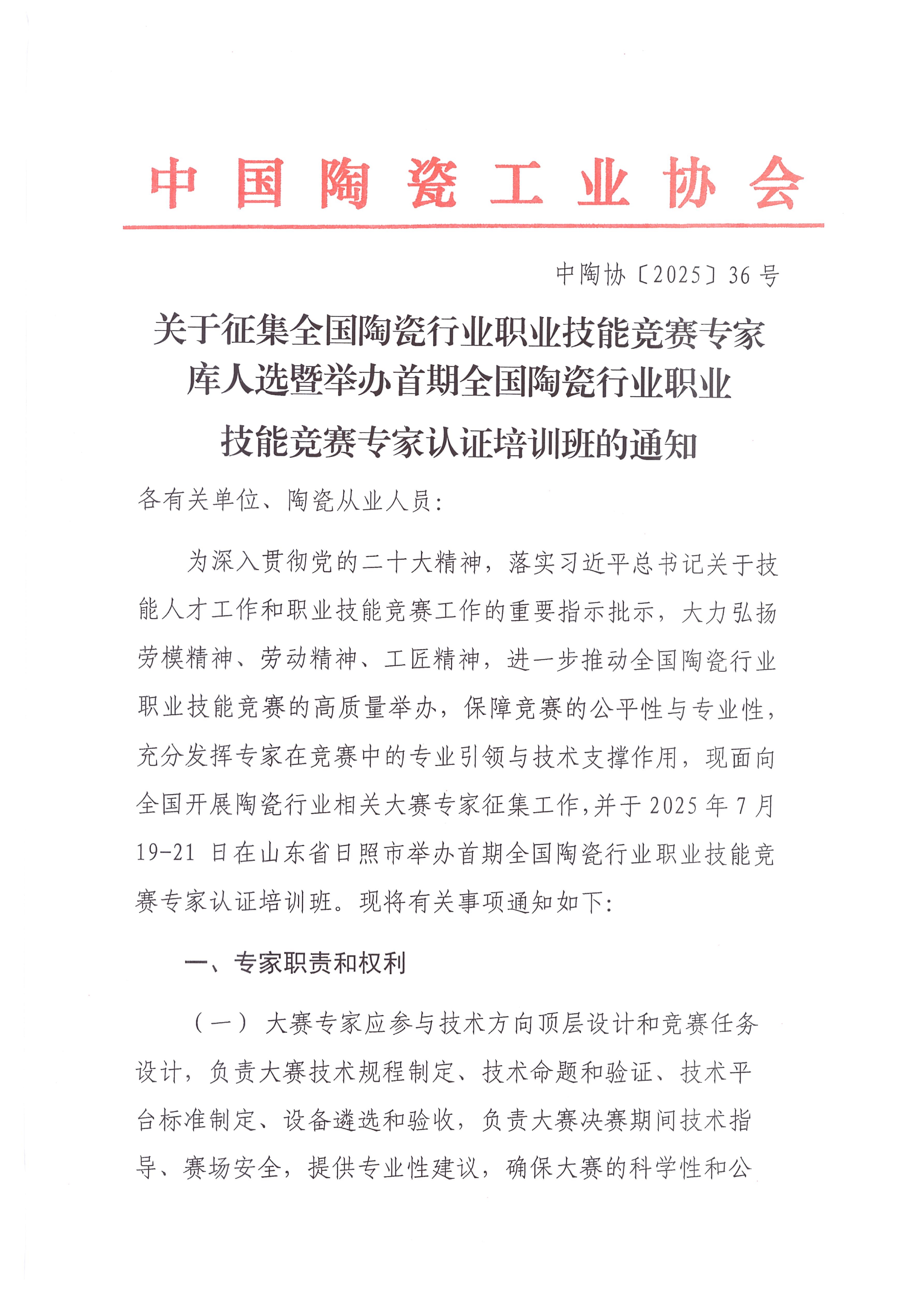 关于征集全国陶瓷行业职业技能竞赛专家库人选暨举办首期全国陶瓷行业职业 技能竞赛专家认证培训班的通知