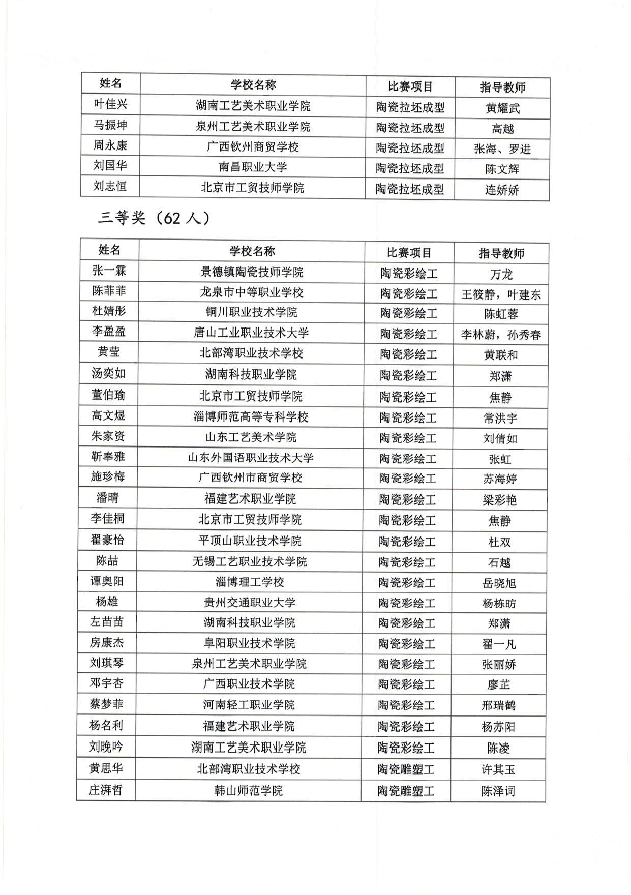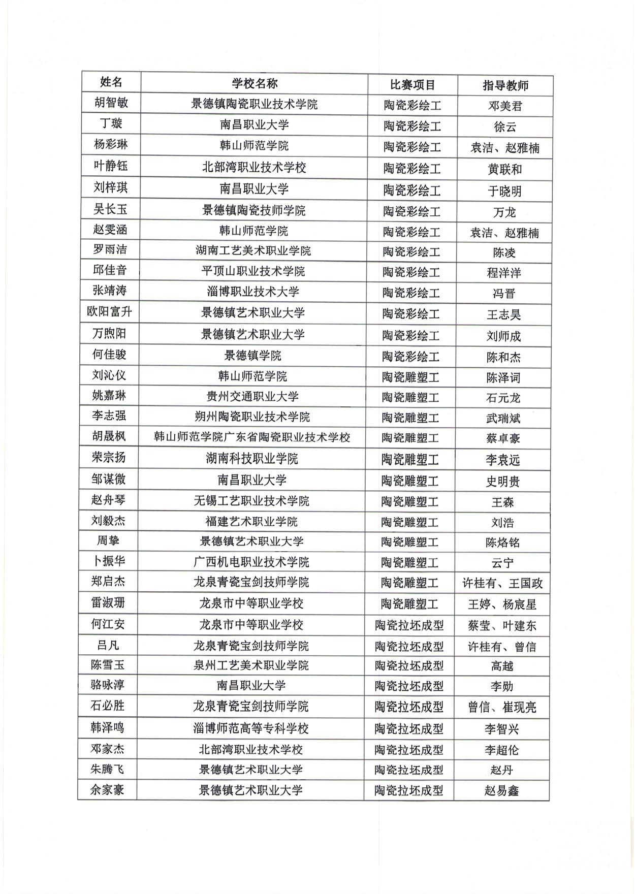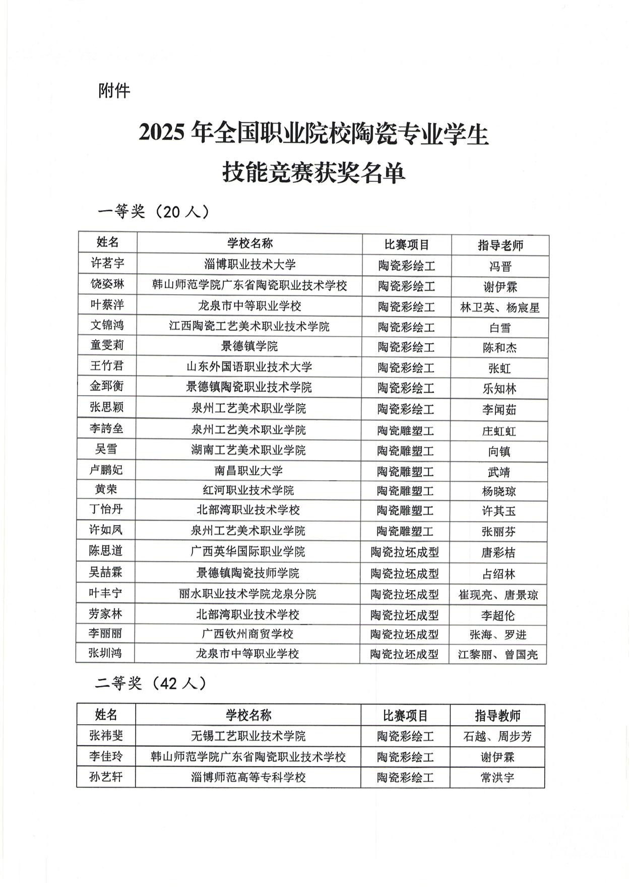 关于公布2025年全国职业院校陶瓷专业学生技能竞赛获奖名单的通知