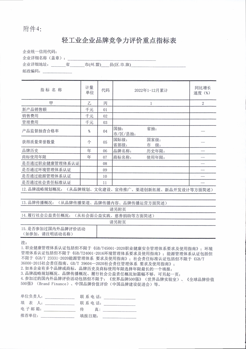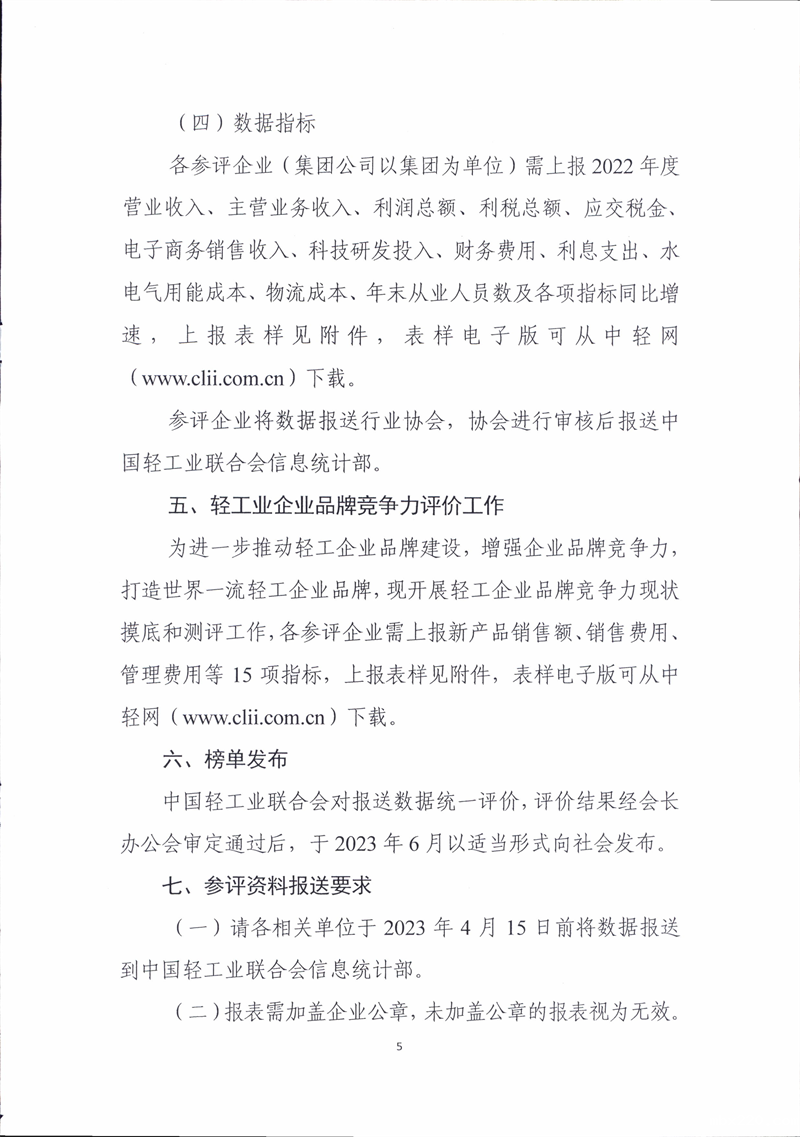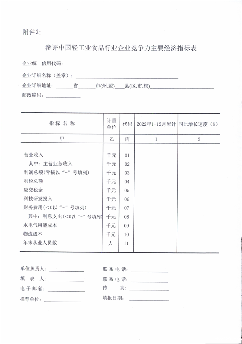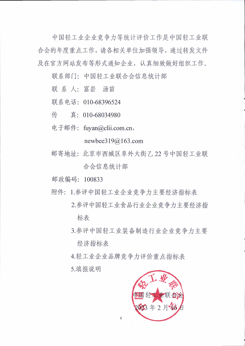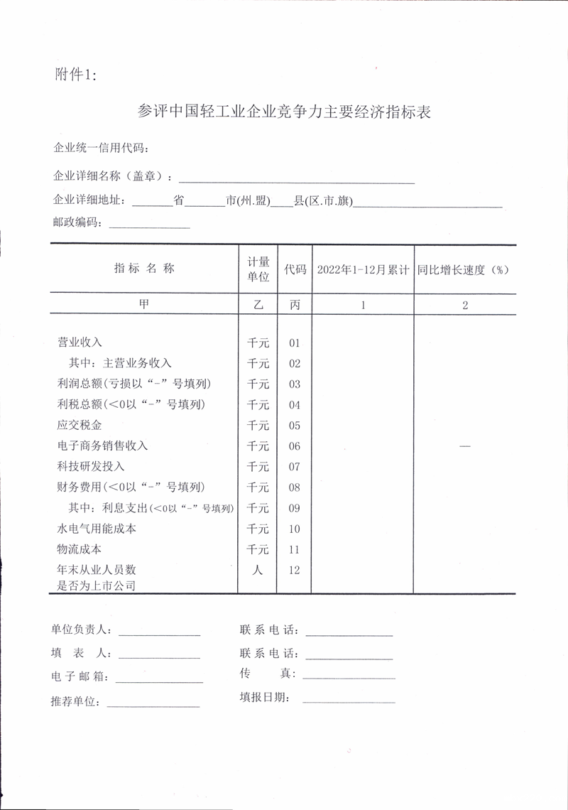 关于开展 2022 年度中国轻工业企业竞争力等统计评价工作的通知