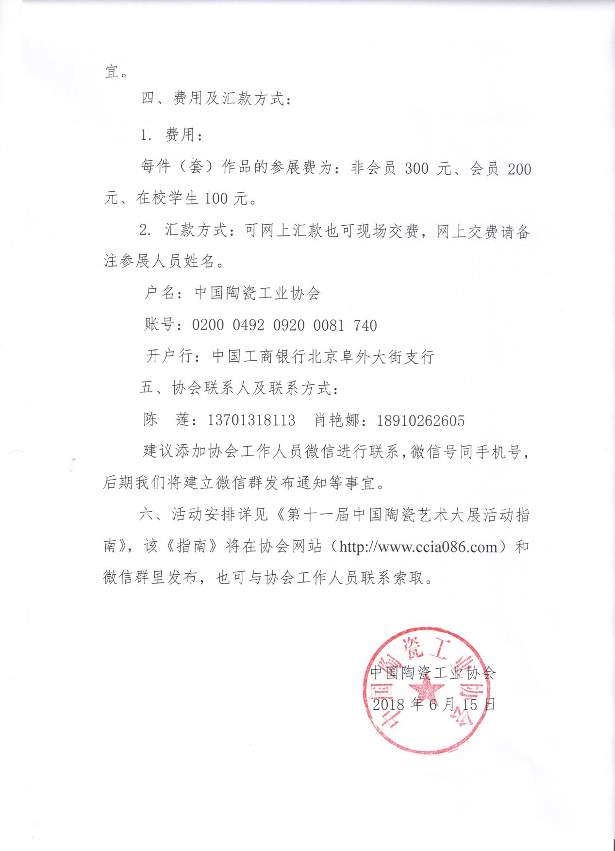 六、活动安排详见《第十一届中国陶瓷艺术大展活动指南》,该《指南》将在协会网站(http://www.ccia086.com)和微信群里发布,也可与协会工作人员联系索取。