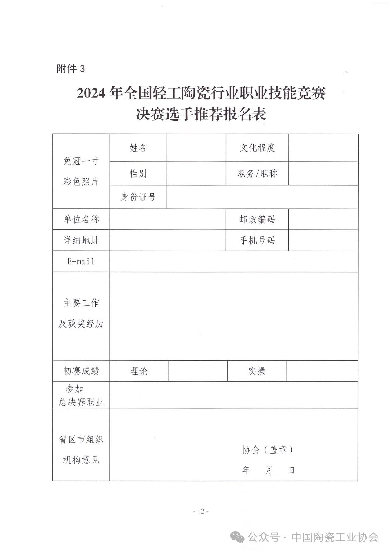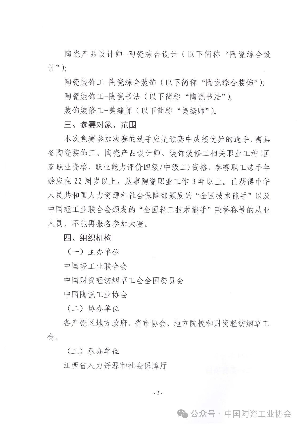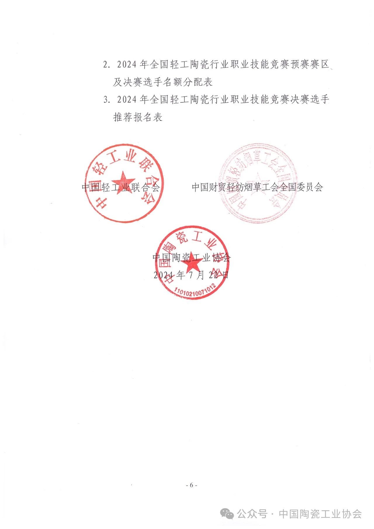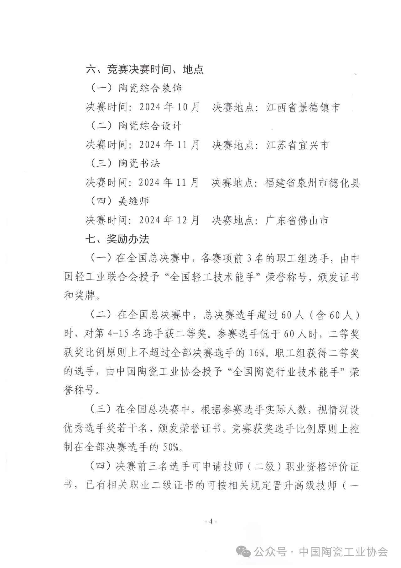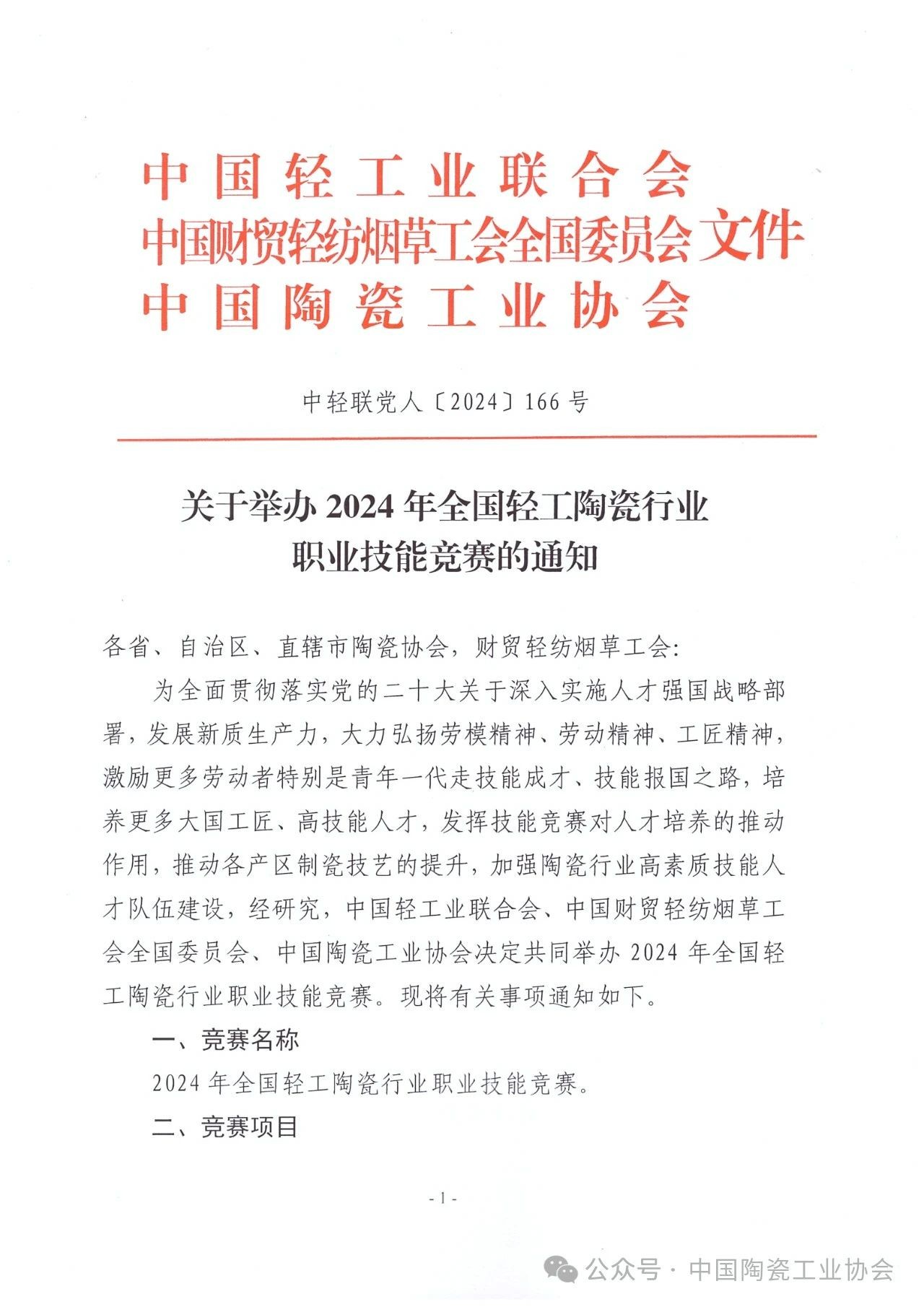【通知】关于举办2024年全国轻工陶瓷行业职业技能竞赛的通知