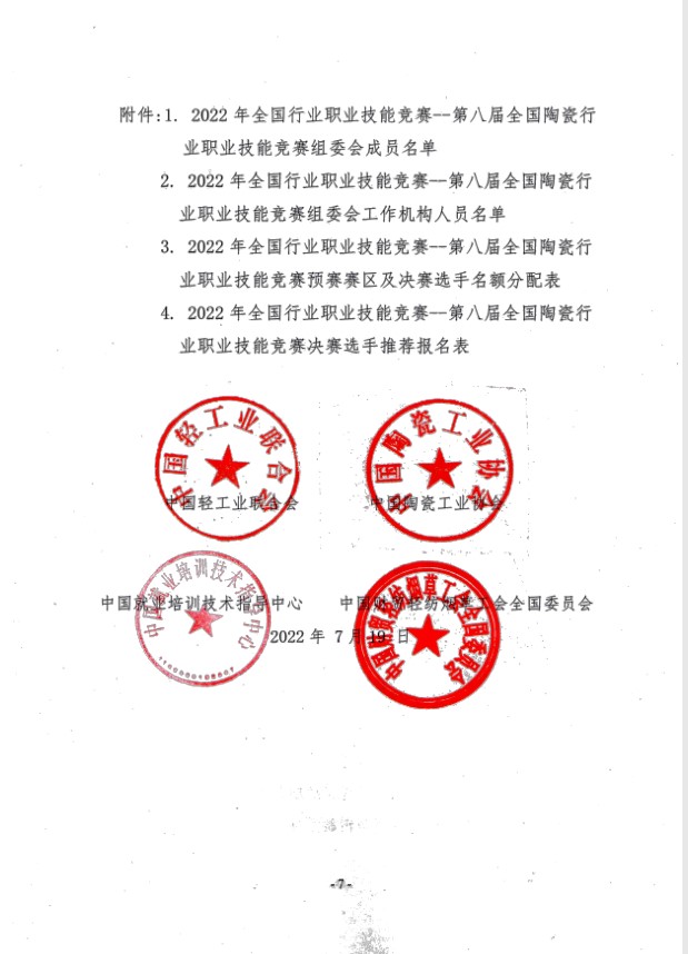 1. 2022年全国行业职业技能竞赛--第八届全国陶瓷行业职业技能竞赛组委会成员名单