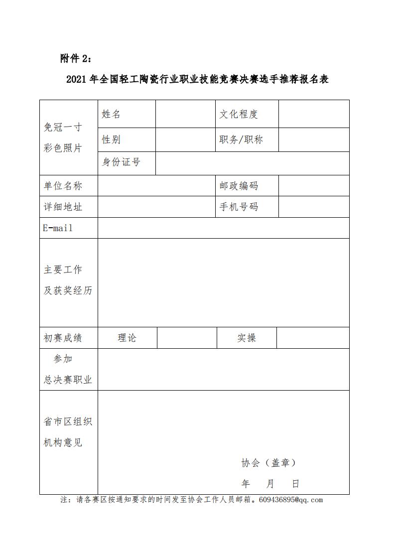 2.2021年全国轻工陶瓷行业职业技能竞赛决赛选手 推荐报名表