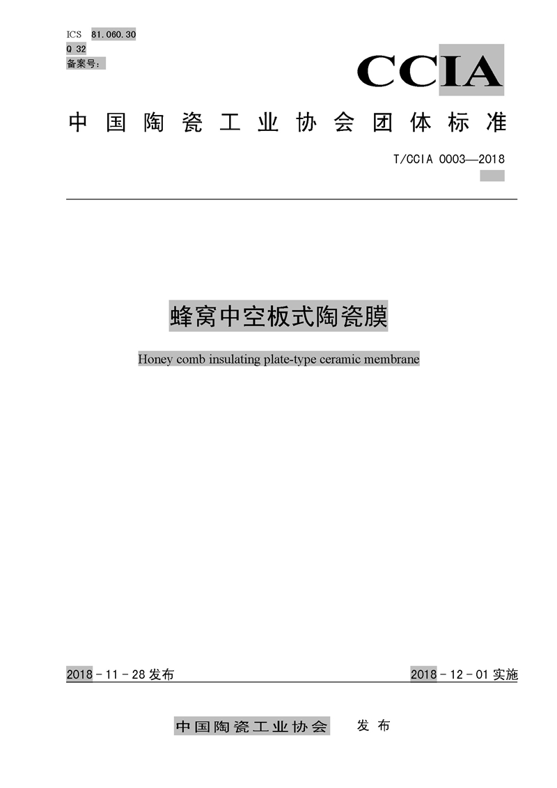 关于《蜂窝中空板式陶瓷膜》标准函审通知