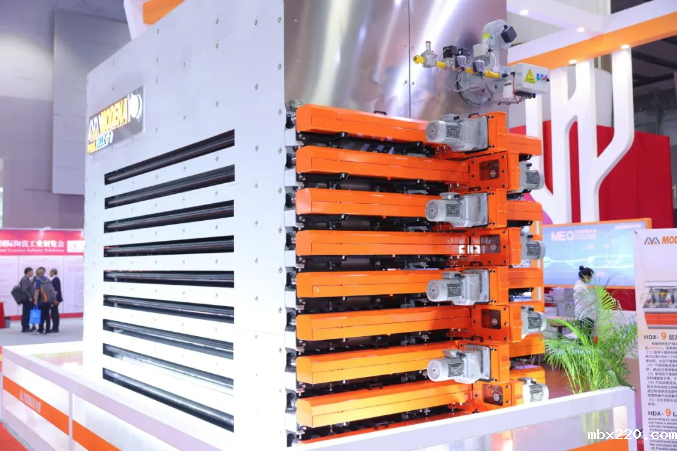 在技术创新层面,多家企业亮出了最新的科研成果与智能化技术。如萨克米展示了可搭配使用的SDP喷墨打印机和DDG干粒打印机,墨水和干粒协调打印,呈现无与伦比的纹理质感和3D效果;中鹏热能的第三代智能巡窑系统,可以实现窑炉全过程安全监控;摩德娜推出了行业首创九层干燥窑,兼具产量大、效率高、切换快、节能好等优点;贺祥的智能马桶高压成型工作站,一个搬运机器人负责6个成型工位的送坯、取坯、自动涂泥,并可随意灵活地配置坐便款型;兰科智能最新推出的六轴机器人具备6个关节,自由灵活,可适应任何码包方式,定位精准,重复定位±0.02㎜;金博特展出了双伺服传动磨边机,智能高效、兼容性强,对角线精度高(误差在0.05毫米内);锐博机电的智能瓷砖抛底机,是一款针对瓷砖背面氧化物清洁而研发的设备,可以帮助陶企摆脱“瓷砖底坯脱模剂”的困境......