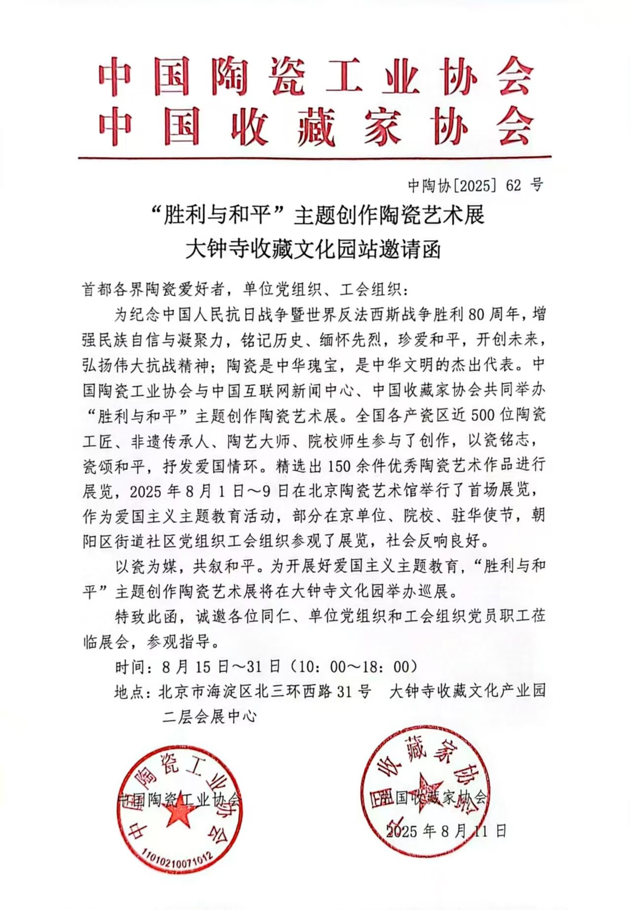 胜利与和平主题创作陶瓷艺术展大钟寺收藏文化园站邀请函